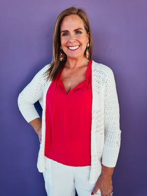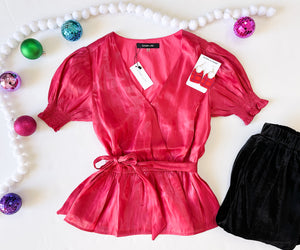 Alice Long Sleeve Baby Doll V-Neck Tie Waist Wrap Sweater