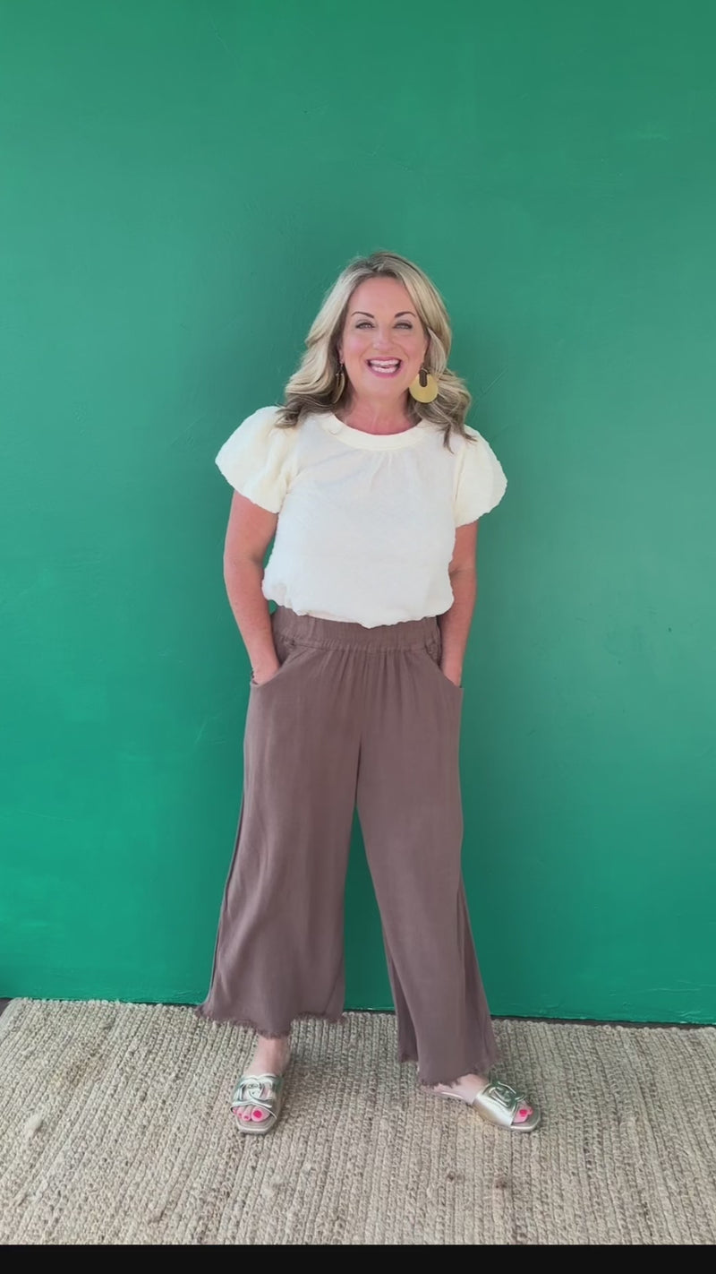 Tabitha Wide Leg Cropped Linen Pants in Cocoa