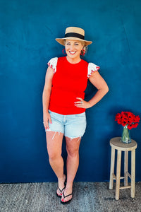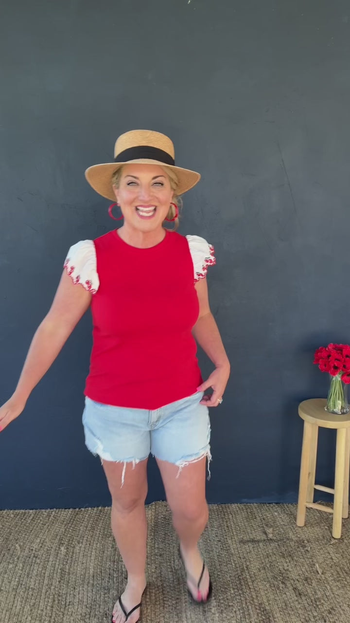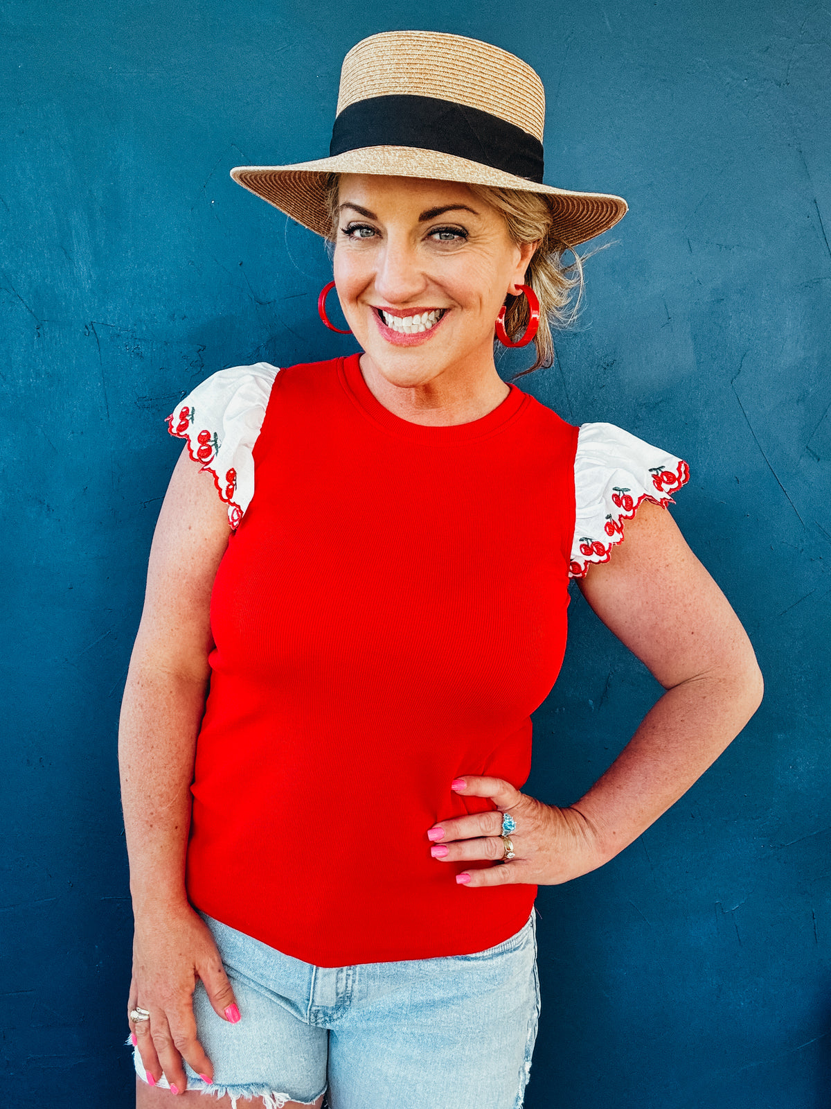 Elevate your summer wardrobe with the Sheree embroidered cherry ruffle sleeve top from Anniewear! Made from lightweight ribbed material, this top is perfect for any occasion. The unique embroidered cherries and scalloped edges on the ruffle sleeves add texture and dimension to this classic piece, making it a versatile and stylish addition to any outfit.