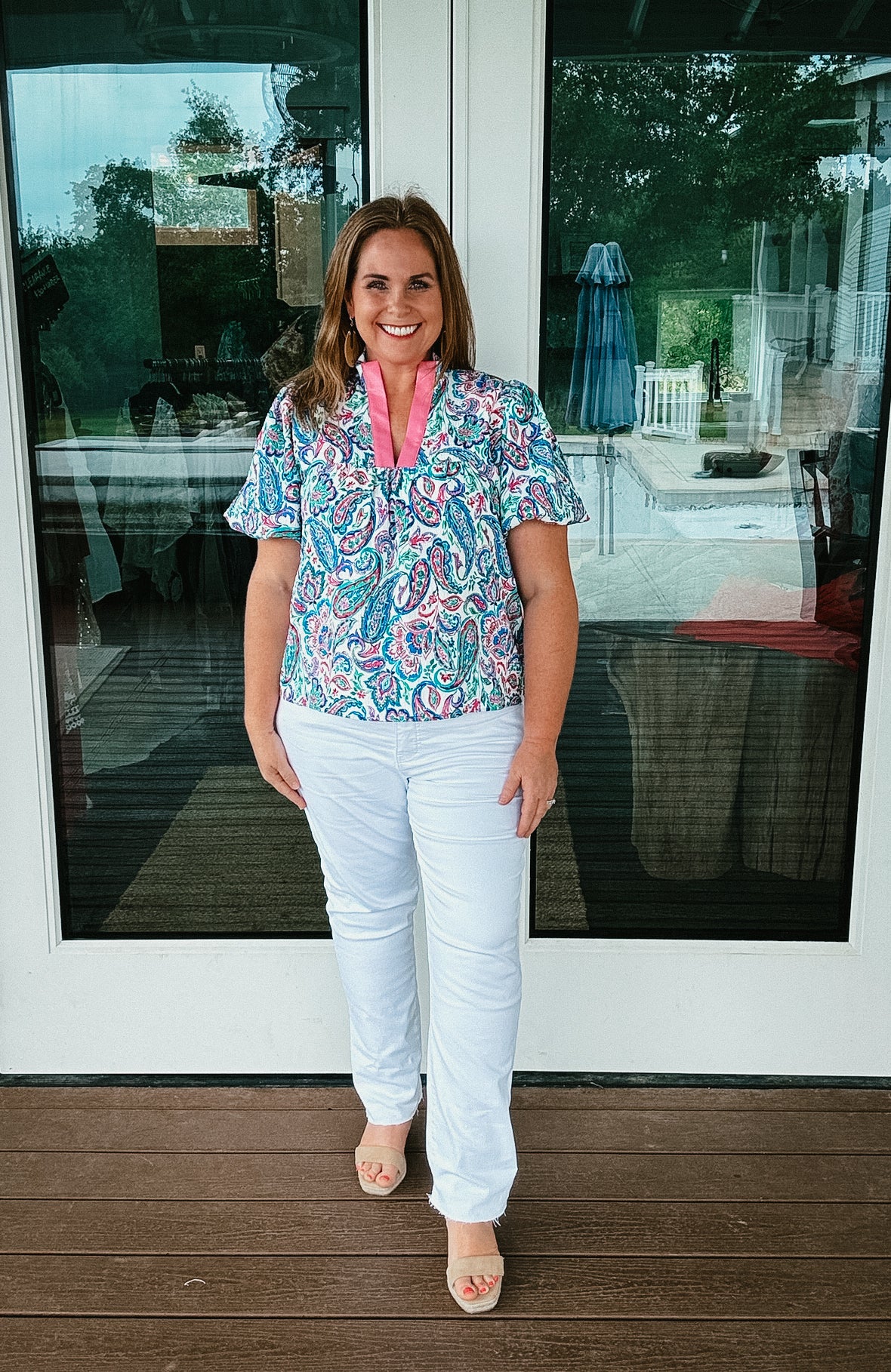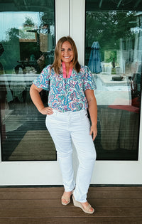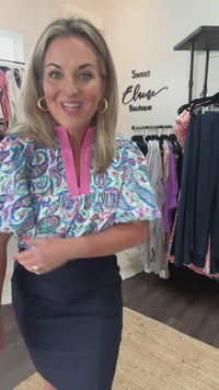 This blouse is bright, cheery and will take you all the way through Summer in your work wear. It is a beautiful blouse, filled with style and professionalism that will surely bring in all the compliments.