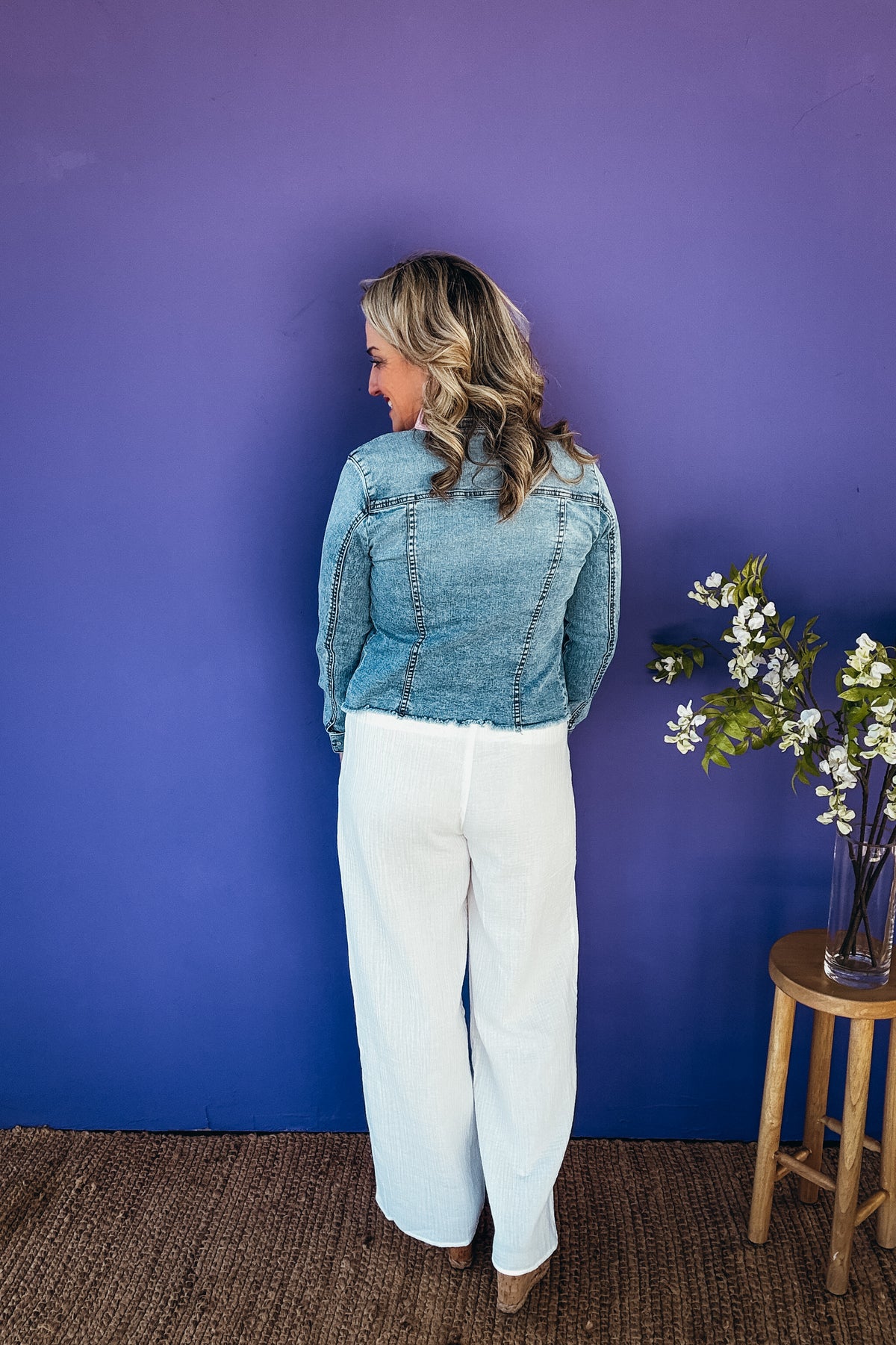 Kara Frayed Hem Jacket in Standard Medium Wash