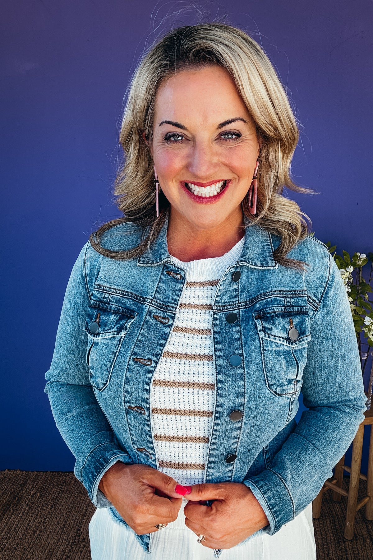 An always-on trend that is a guaranteed closet essential. This denim jacket is cut from our medium base wash. Designed in our soft cotton denim with a touch of stretch, a raw hem completes the look.