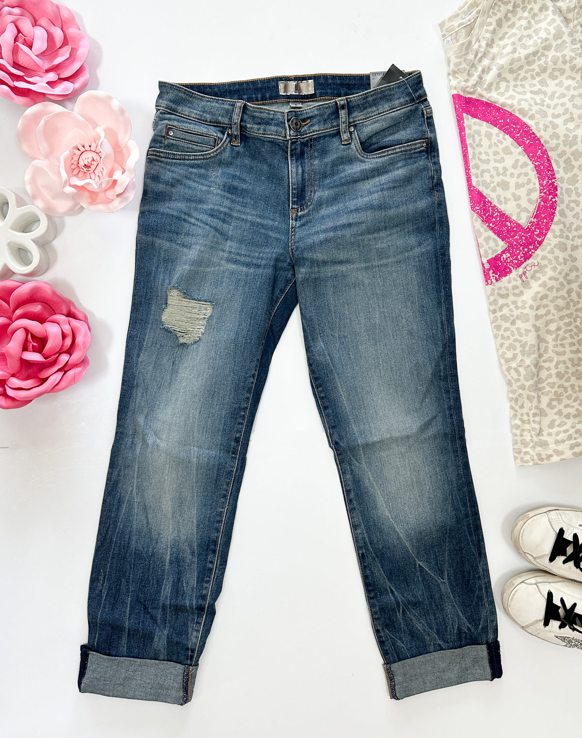 - Size & Fit: Inseam: 26 1/2", Leg Opening: 13", Rise: 9"