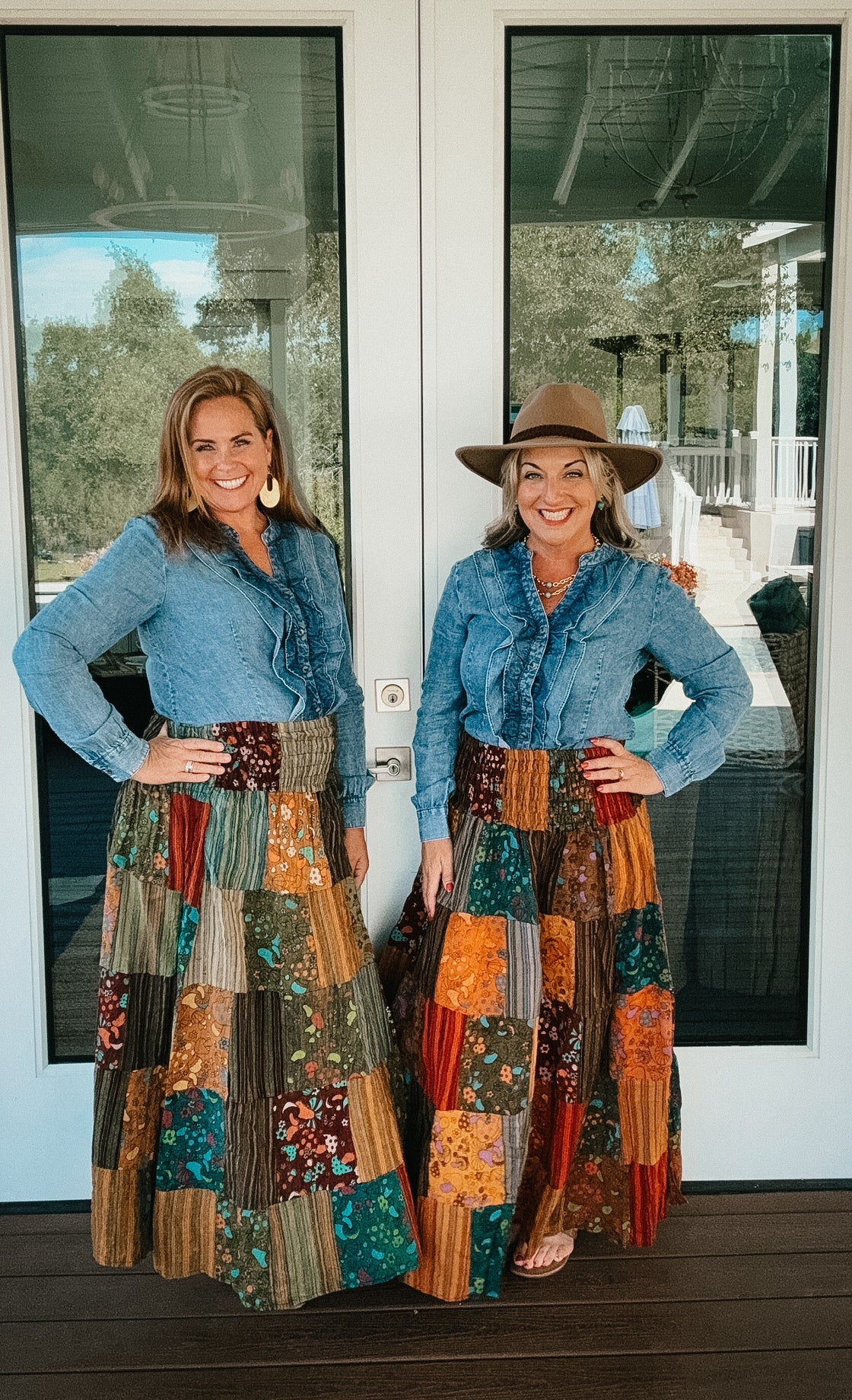 Fallon Double Ruffle Long Sleeve Chambray Shirt