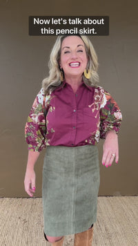 Zoe High Waist Faux Suede Pencil Skirt in Olive