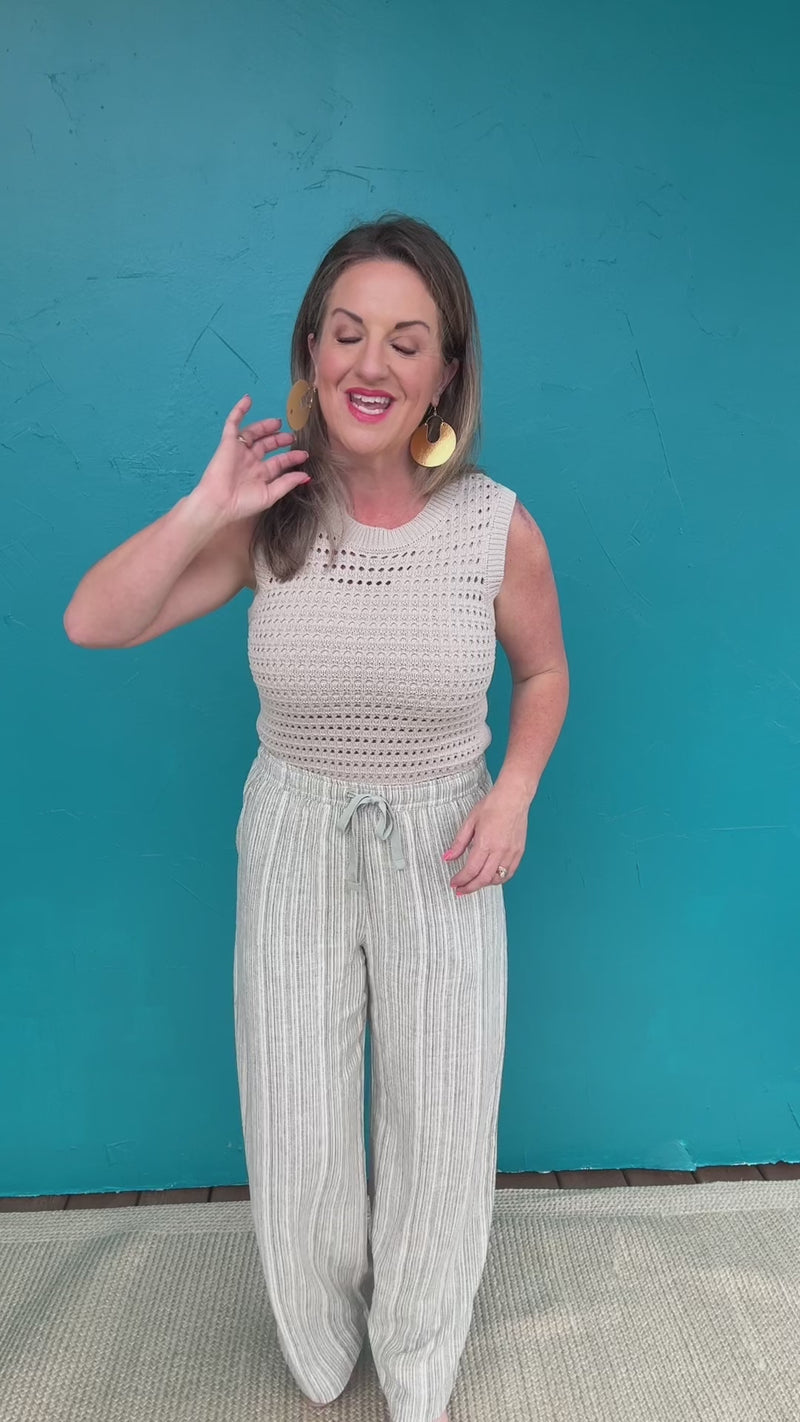 Crafted in a soft cotton crochet knit, this tank features a classic crew neckline with a relaxed, easy fit that drapes beautifully without feeling bulky. The open-knit detailing adds subtle texture and breathability, while side slits create movement and a flattering, laid-back silhouette.