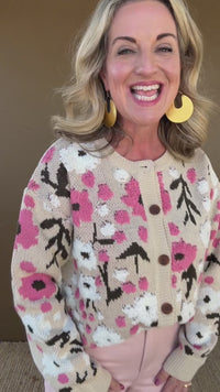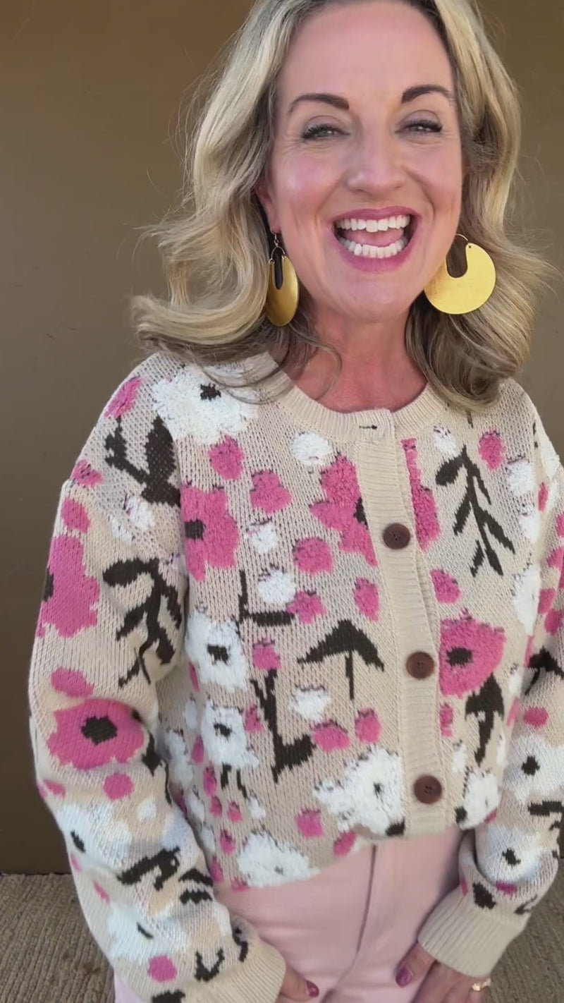 Elodie Boucle Flower Pattern Sweater Cardigan