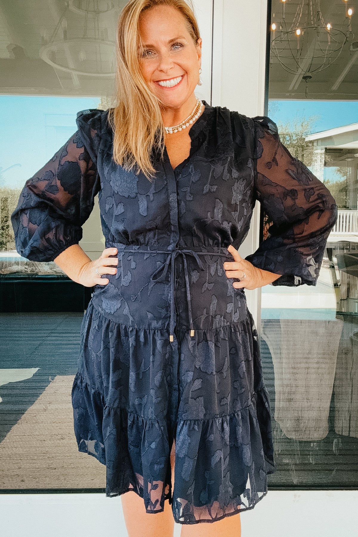 Holly Navy Chiffon Floral Dress