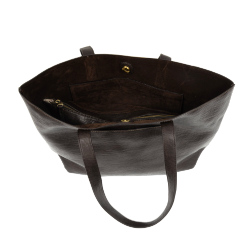 Crafted from rich buffalo grain vegan leather, this oversized Tote from Joy Susan has a casual vibe. Three interior compartments enhance the organizational appeal, and the convenient front pocket keeps your phone, keys, and essentials within easy reach.