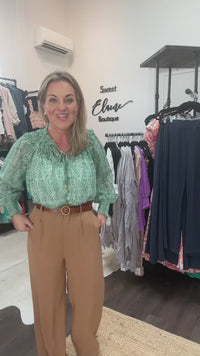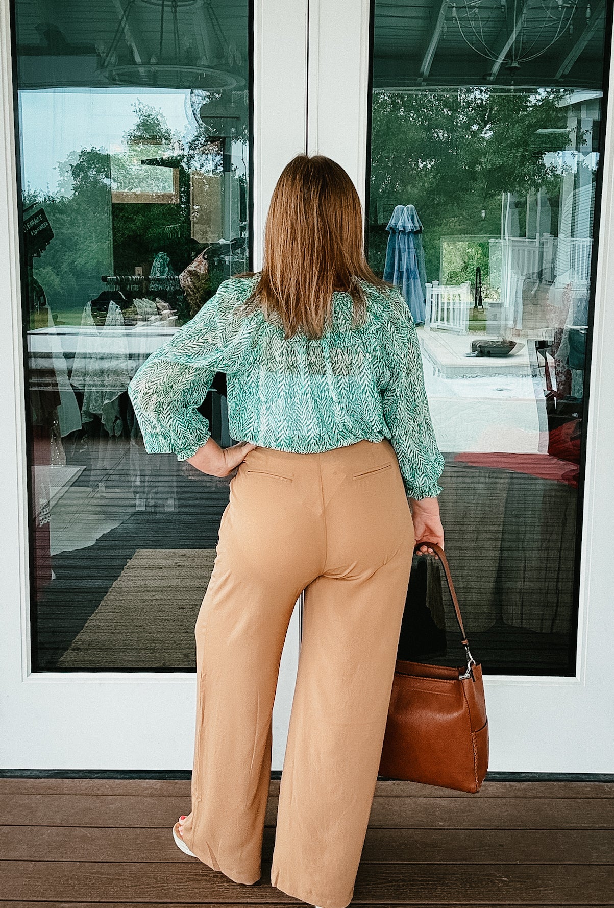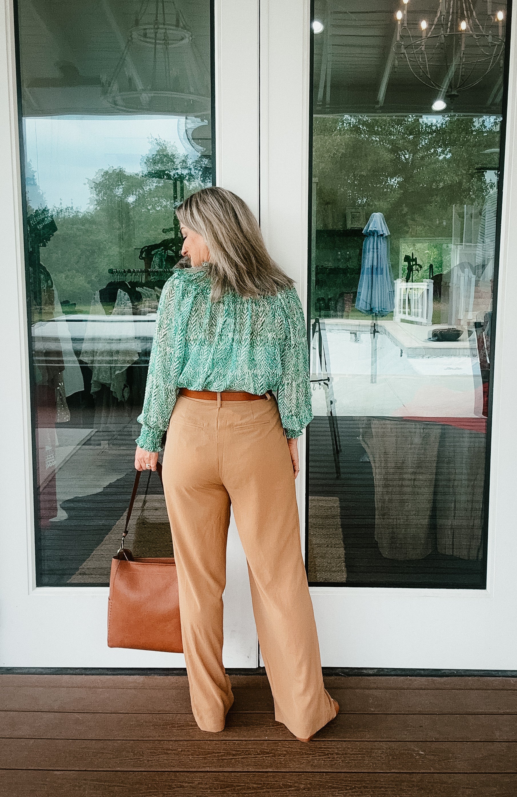 True to size. Janell is a 5'5" and a size 6 wearing size small in the blouse. Dana is 5'5" and a size 12 wearing size Large.
