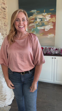 This gorgeous pleated sleeve blouse in a matte satin blouse is sure to be a show stopper at your next Holiday event. The pleats at the shoulder are gorgeous!
